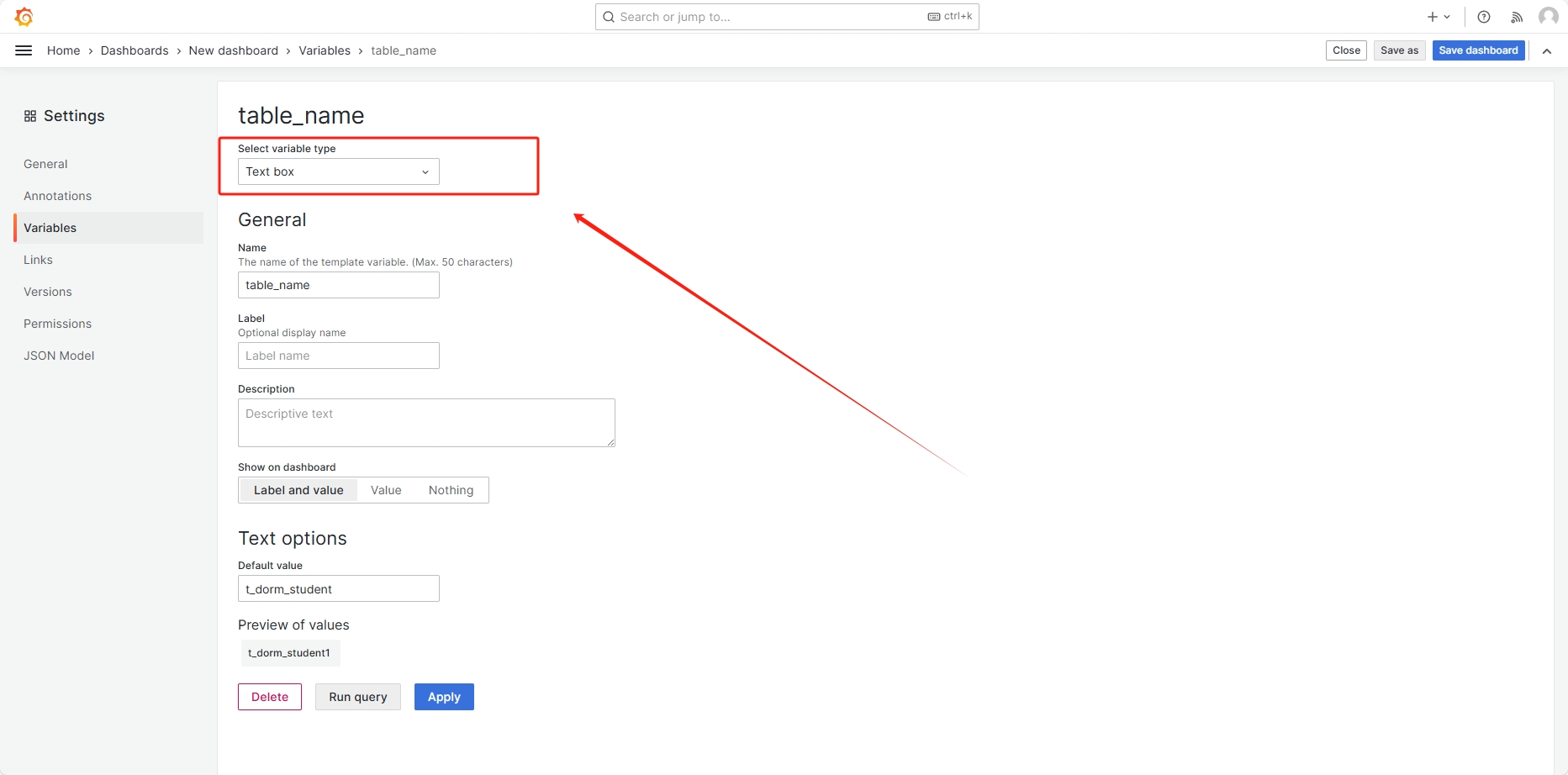 变量名称(定义变量名前加var-):var-table_name 传入的参数(输入$可进行选择):${__data.fields.table_name}