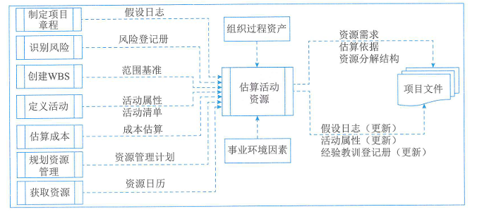 输出: 资源需求、估算依据、资源分解结构、文件更新