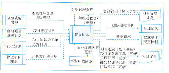 输出: 物质资源分配单、项目团队派工单、资源日历、变更请求、文件计划更新、组织事业更新