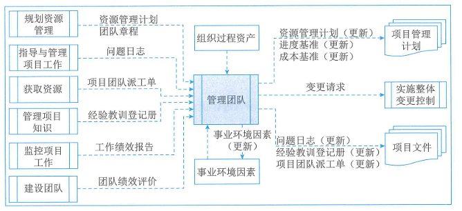 输入: 团队绩效评价、工作绩效报告、文件计划、组织事业