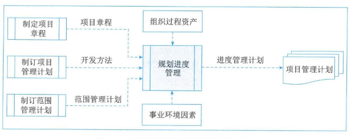 输出:进度基准、进度数据、项目日历、项目进度计划、变更请求、文件计划更新